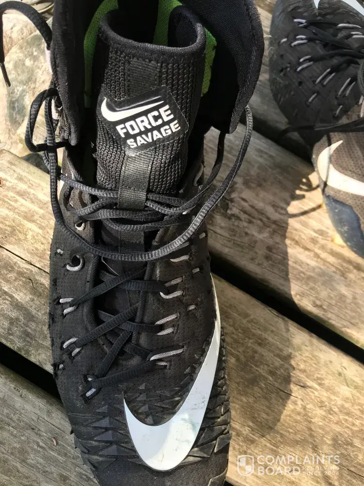 I bought my son the newest and supposedly the best Nike cleats force savage black in size 12 US UPC [protected] the inside arch seams on the outside of shoes have ripped out and there is no longer any support there. We are very disappointed in the quality of these expensive cleats and would appreciate a replacement pair.