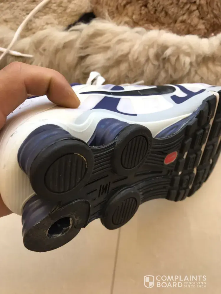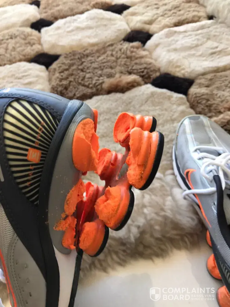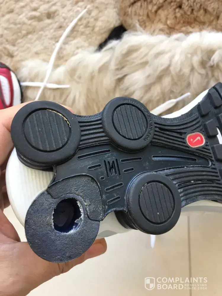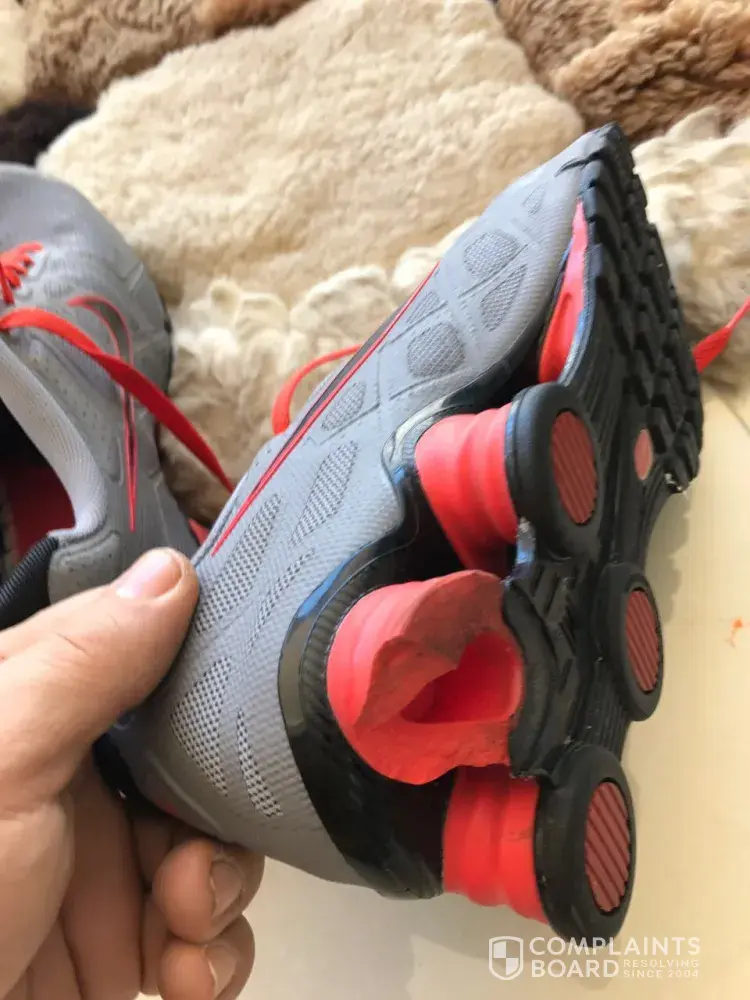 My name is Wanderson Carvalho, I´m a lawyer from Brazil and a big fan and customer of Nike. Occurs that ten out of my twenty NIKE Shoxs “springs” are crumbling (peeling). And three out of these ten pairs and just BRAND NEW, that were barely used! The white one, I was using it for the third time and as I walked, the spring just tore apart and I almost felt.