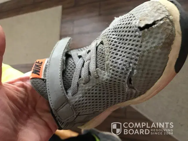 I purchased a pair of Nike shoes for my son from Kohl's in September. They were only worn outside until November, then were strictly inside until April and have now been worn outside again for the past month. I've always bought Nike shoes for myself, but am extremely disappointed in my son's shoes. I've attached a couple photos for review. Both shoes have basically disintegrated, leaving several holes around the toe of the shoe. I would really appreciate resolution to this defective product, whether it be a gift certificate toward new shoes or a new pair of the same shoe sent to me, whatever protocol is...I look forward to hearing back from you -