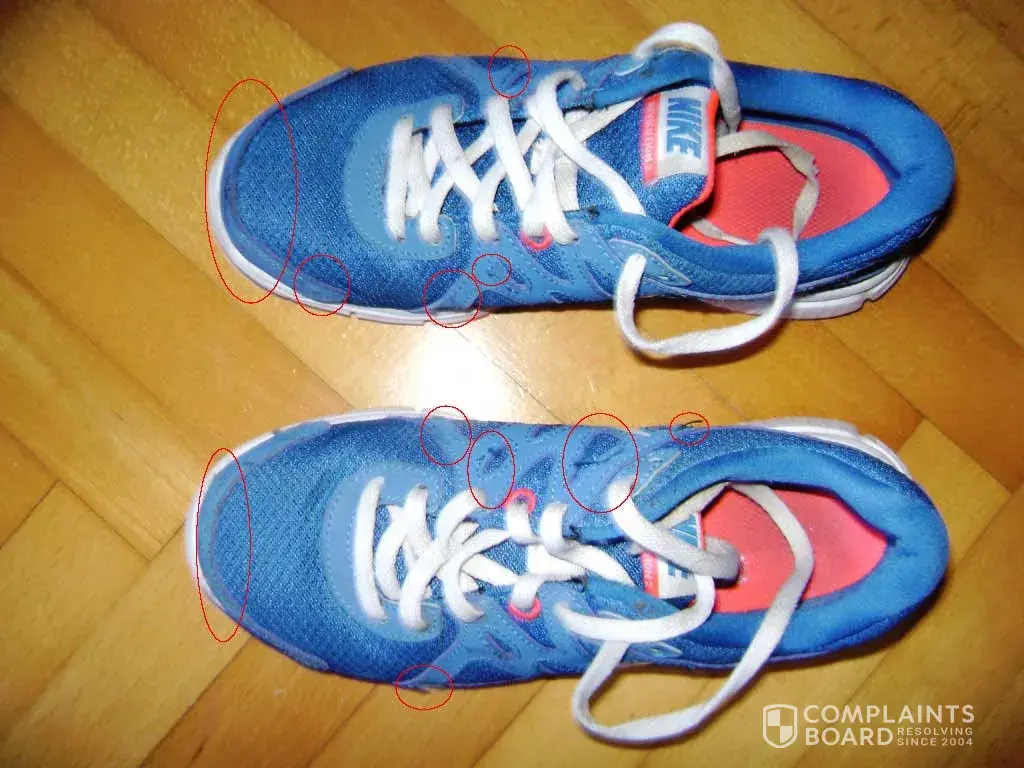 Pls., Check the attached pics about Nike sport shoes quality. And I have many pairs in the similar condition. All of them, almost new, without any further usage. 2 / 3 times use and become to tier in parts.