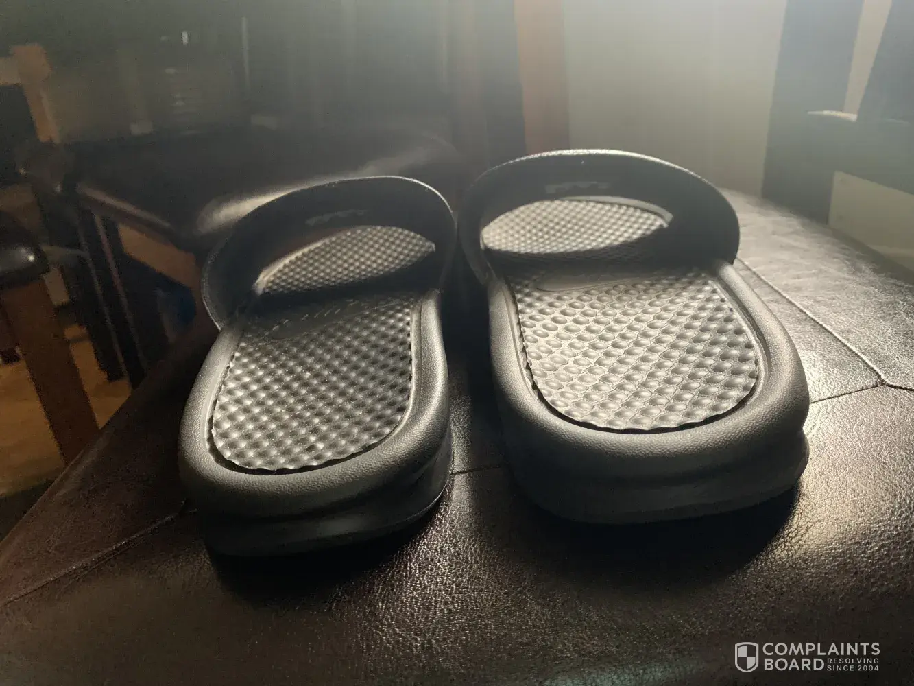 About 6 months ago I purchased a pair of black Nike slides with the Gold "NIKE" writing on it for my boyfriend. He always gets size 10 in the slides. He wears a 9 in regular shoes. So he makes sure to go a size up in slide to a size 10. When he tried to wear them they were so tight that he could barely squeeze his foot into it. We moved to another house and somehow that paid of slides got lost, (not like they fit anyways.) So last month after losing those, I decided to go buy another pair to replace those. The same exact pair, Black with the GOLD NIKE writing, and also bought an all black pair, both were a size 10. We were hoping that it was just a manufacturing error with the first pair we got. The all black pair size 10 fit perfectly fine, but the black with gold writing was still super tight and he can hardly fit his foot into them. I'm not sure why this keeps happening or if this slide in particular is just made a different way, but this is now the second time this has happened with the same exact shoe and it seems to only be this particular slide that does this, and I hate that we have wasted money twice on them. He loves his NIKE slides. hopefully you can assist.