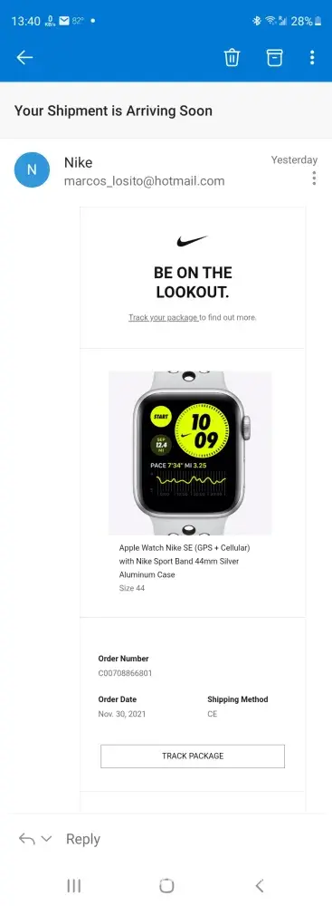 As soon as I noticed that the watch and accessories were missing, I imediatelly contacted Nike through the chat, after several unsuccessful attempts on the phone [protected]) to inform the occurred, filing a claim.