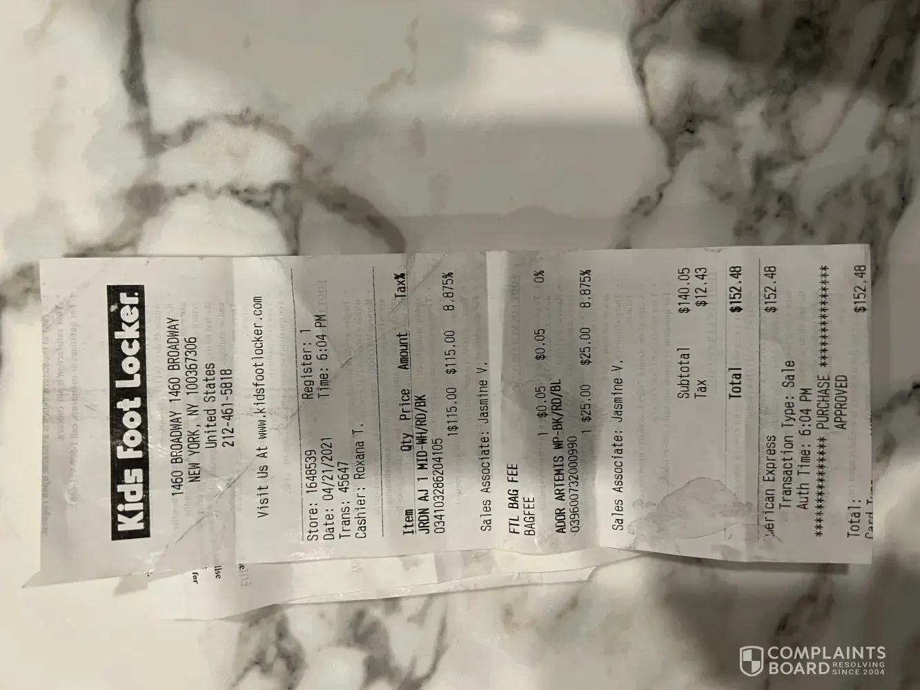 Desired outcome: store credit for new pair of sneakers would be appreciated my cost was $69.00