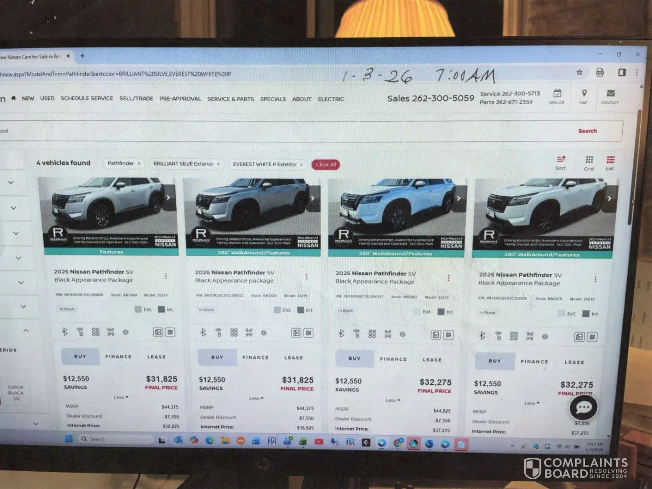 Attempted purchase of a 2025 Nissan Pathfinder SV on 1/3/2026
