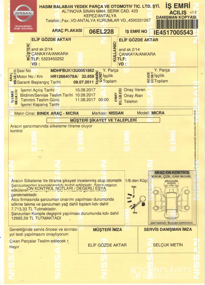 1-2 months ago suddenly the transmission light turned on on the dashboard. As i went to the service they told me that it is a failure in the transmission and it needs to be repaired or changed. But we all know that it is a mistake of Nissan itself. And we have several cases in Turkey about the CVT transmission in the same models of Nissan. So normally Nissan Turkey must have replaced my Transmission with a new one. But they did not!