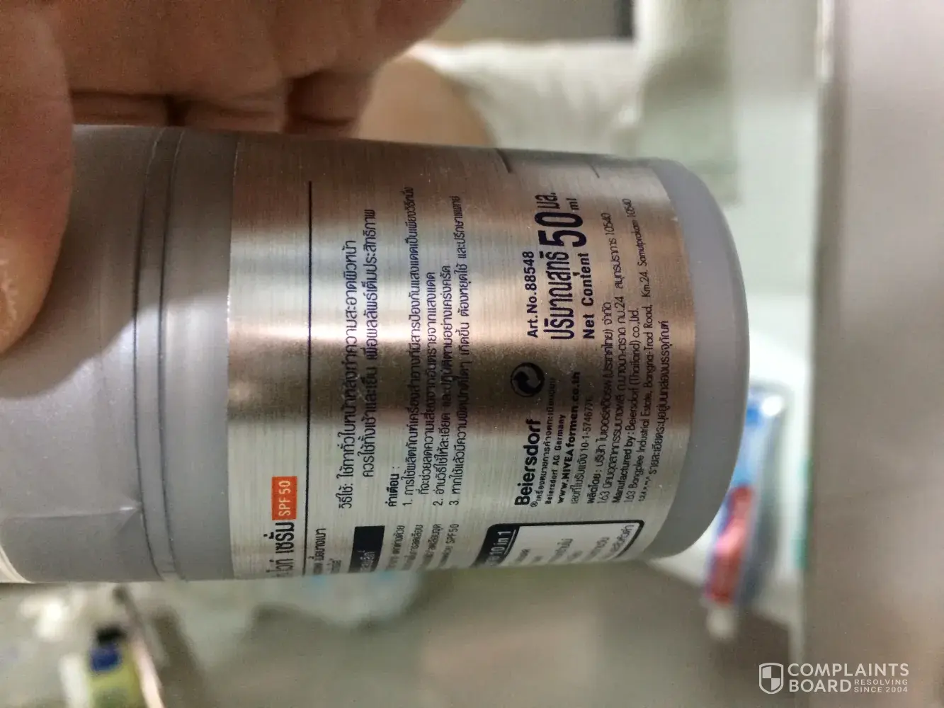 I called the Nivea customer service in Thailand and due to language issues I asked that we communicate by email which was fraught with problems due to the inability of Nivea Thailand customer service staff to understand english beyond the basic solitudes and anything requiring some technical knowledge was hopeless.