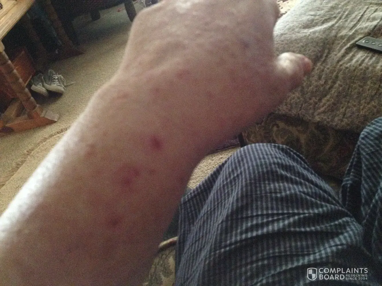 After two applications, I developed a painful, burning, itching rash on the entire length of my arms and including my hands. I work and it is so embarrassing for people to see this. I have scratched until it bleeds. It is a very puffy, very red, raised rash covering the entire surface of arms and hands. I have pictures.