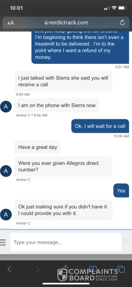 Called Nordictrack on January 4th was told by the agent that they would send an email to have someone contact me (I told them I expected a call from a manager who could help within an hour)…. No surprise that the call never came.