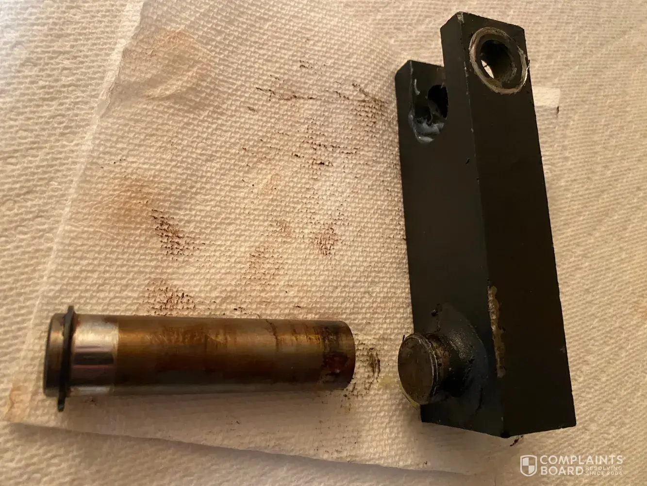 rod sheered off from bracket at snap ring slot, causing a dangerous safty issue during use. This is definitly a part defect and safety issue, this should not be a customer responsibility. Replacement part plus shipping cost $134.19. I have paid for this replacement part, but would like a refund!... Please advise