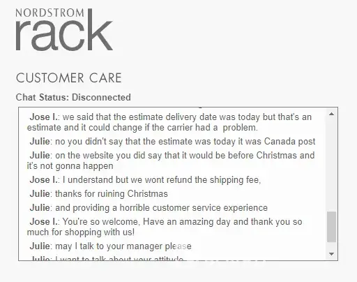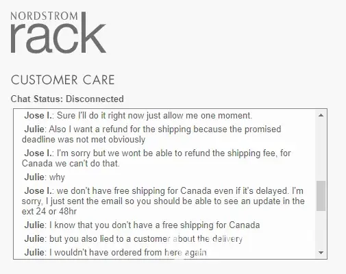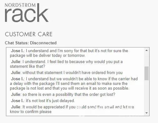 Nordstrom Rack Delivery deadline not met and customer service