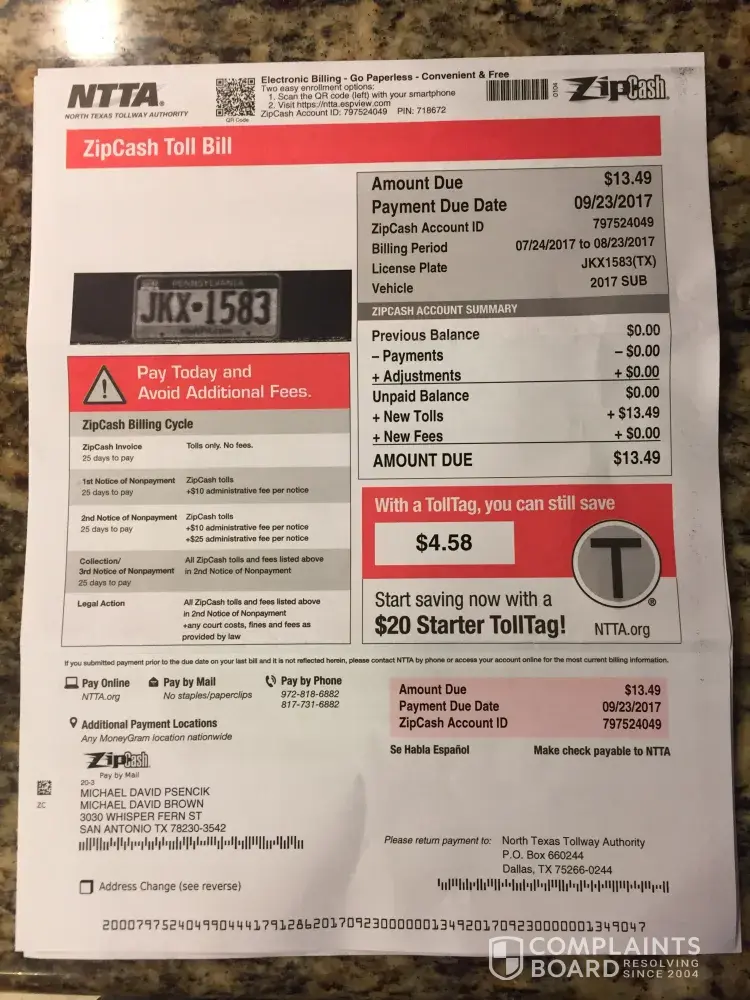 Then I received a billing stating my toll tag account has received a negative balance.. I don't have a toll tag account. The letter says I need to remit the negative balance, however when I spoke to the NTTA representative today, she said she doesn't see a negative balance for me to pay.