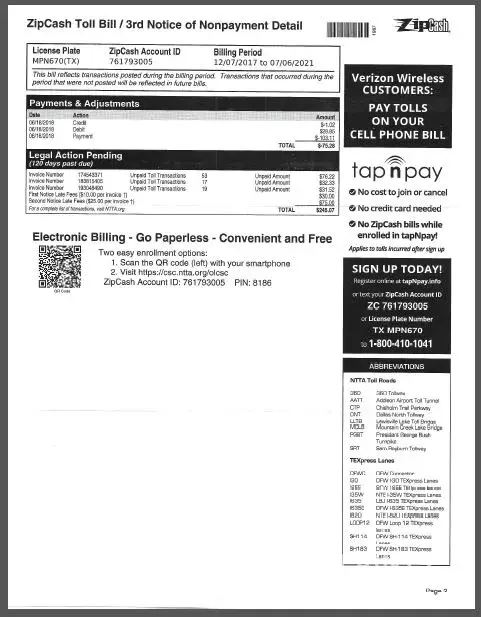 I need the NTTA to cancel this bill immediately. Zip cash account ID: [protected]