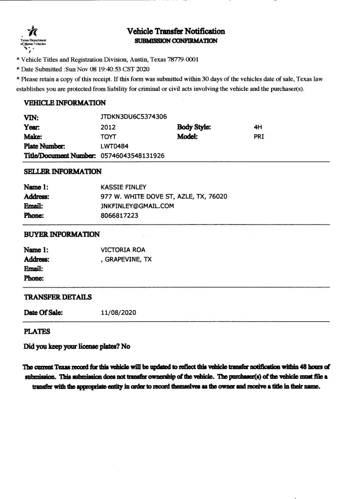 I responded multiple times with the details, and eventually the proof from the TX DMV, that I sold the car and filed the Texas Vehicle Transfer Notification timely on 4/2/20 (the same day I sold the car).