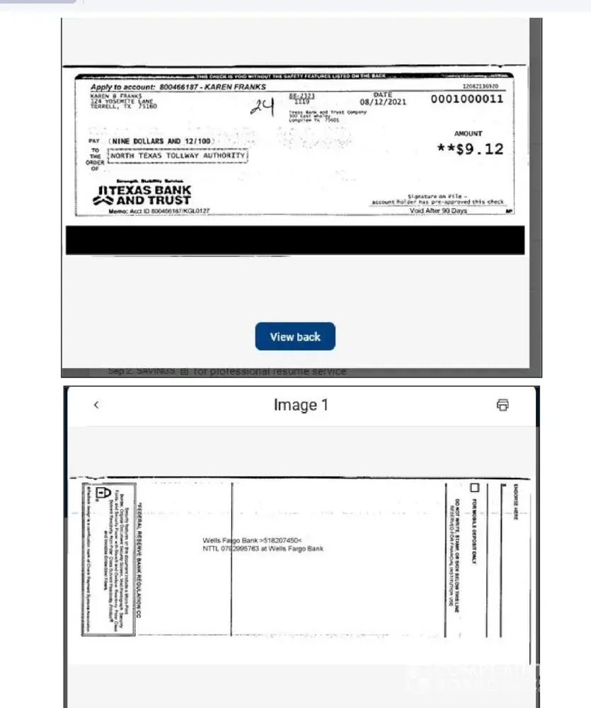 A week later I got a past-due notice and late fee assessment, claiming either non-payment or pmt after due date. I contacted NTTA by email (Always by mail/email so there's a record). They wanted a cancelled check. Since I paid with an electronic check I asked if my statement would do. They told me to send what I had. I downloaded a pdf of my bank statement with the date the check cleared, AND front and back of the digital check. I even wrote the bank asking them to confirm the date my payment was considered "cleared" and they confirmed that it was PAID ON TIME.