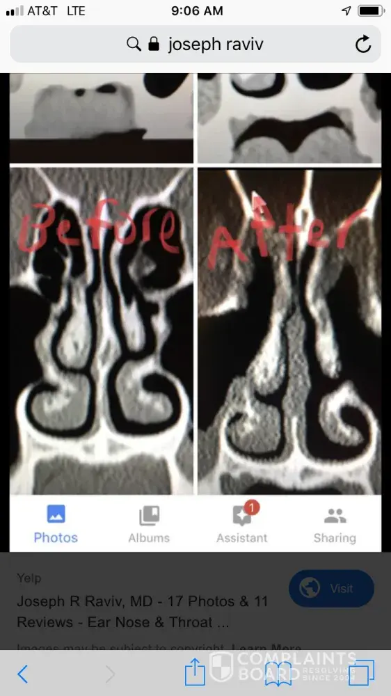 Read full complaintDr. Joseph R Raviv | unnecessary septoplasty