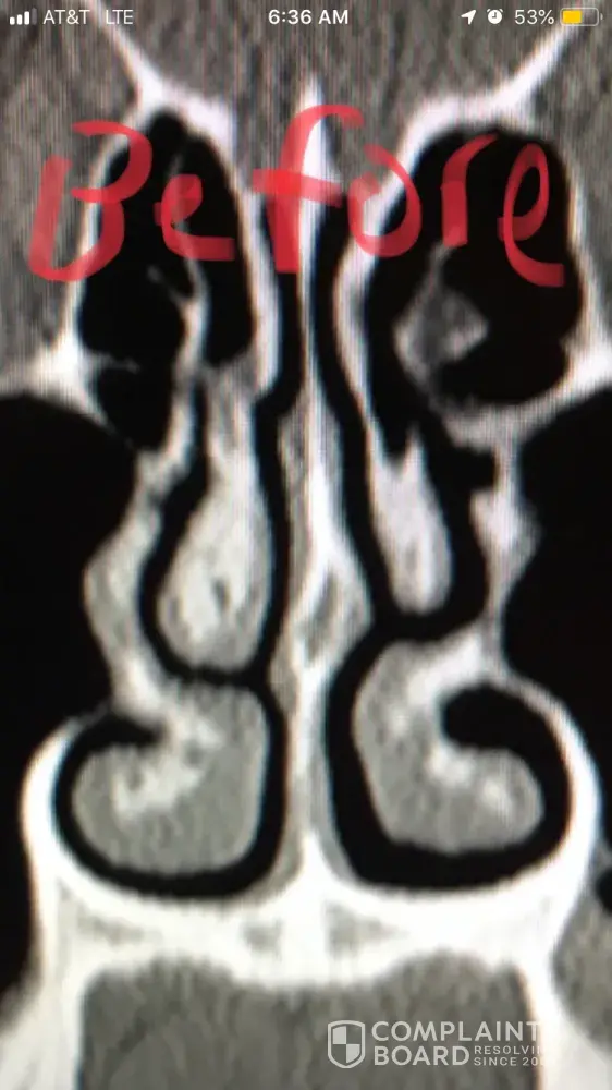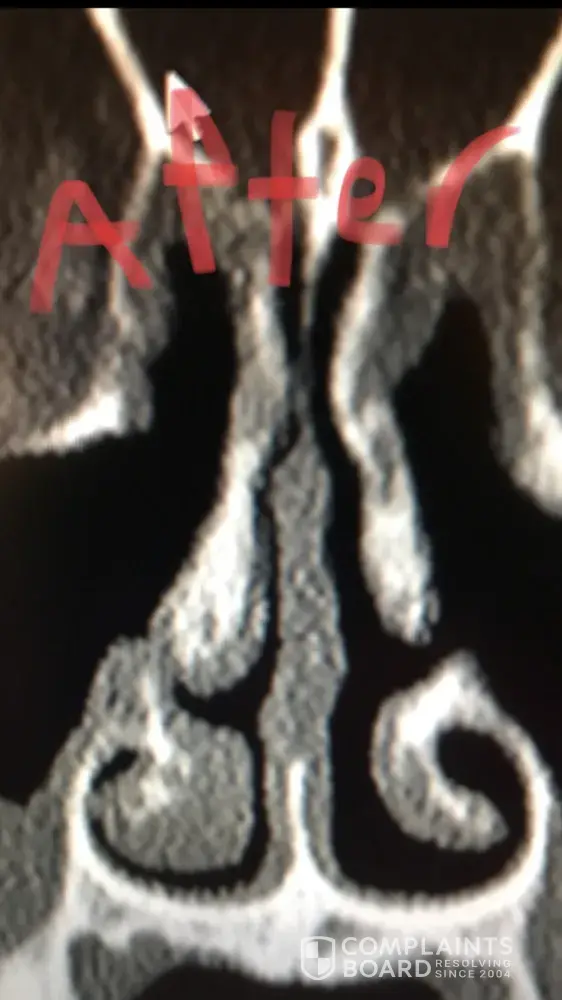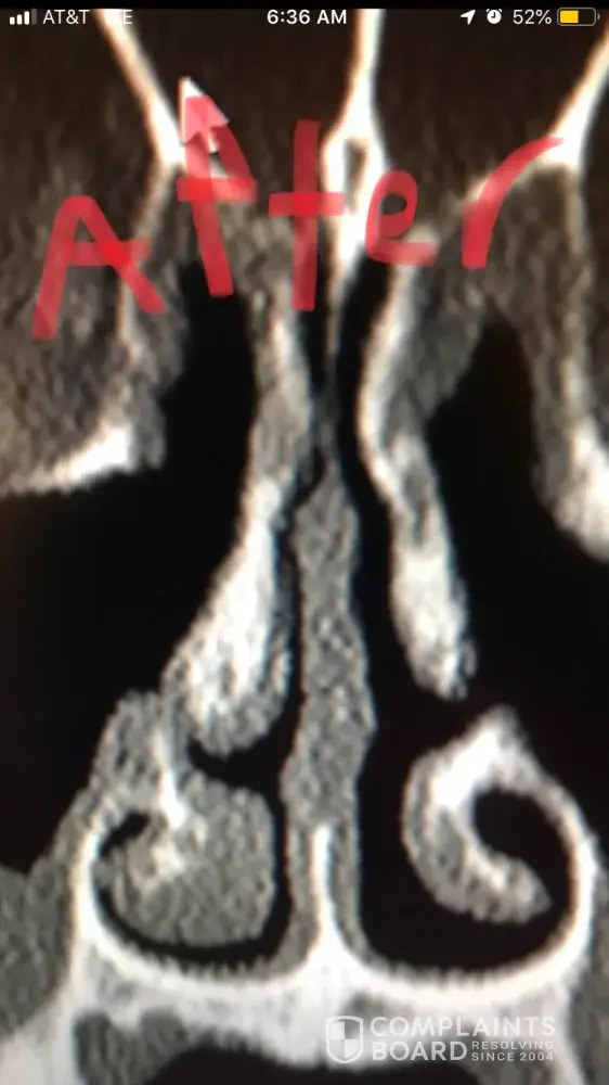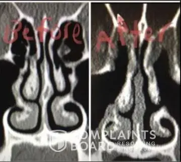 For people reading this, I have included x-ray images of the inside of my nose, before and after my surgery with him. As you can see from these images, my nasal airway was equally open on both sides, before surgery, and the septoplasty didn't need to be done. By performing it, he severely narrowed the right side of my nasal airway.