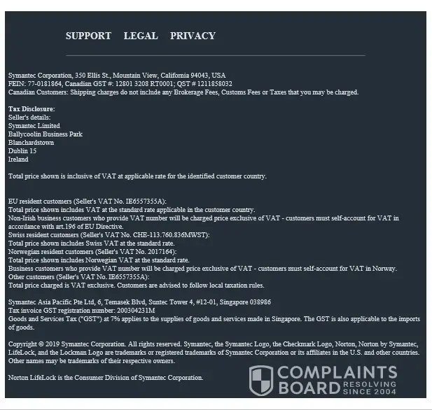 Norton failure to provide a proper complaints forum