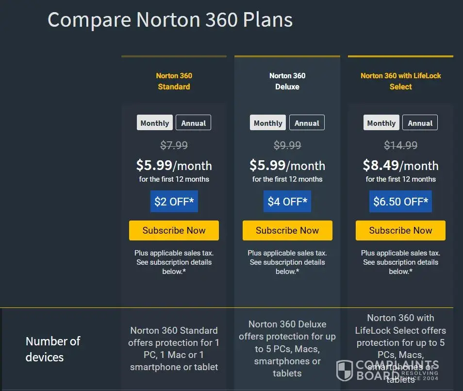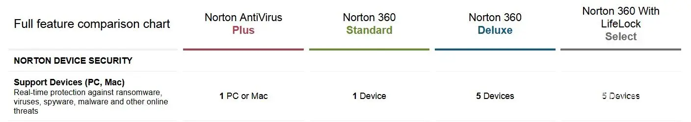 2) Capture of comparison from https://us.norton.com/products/norton-360-deluxe