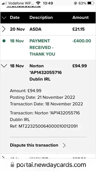 On 18th November 2022 an amount of £94.99 was taken from my account.