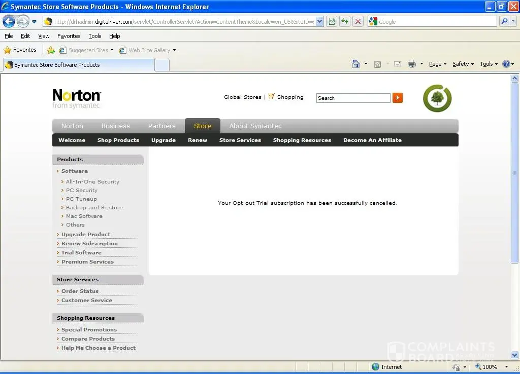 On March 19, 2010 I received an email from Norton stating that they appreciate my recent order placed on March 13, 2010. The email made no mention of it being cancelled. Actually, they had reactivated it. I went to the website again and cancelled that one. I assume that this will be an ongoing thing until the 27th day till they charge my credit card for the unauthorized charges.