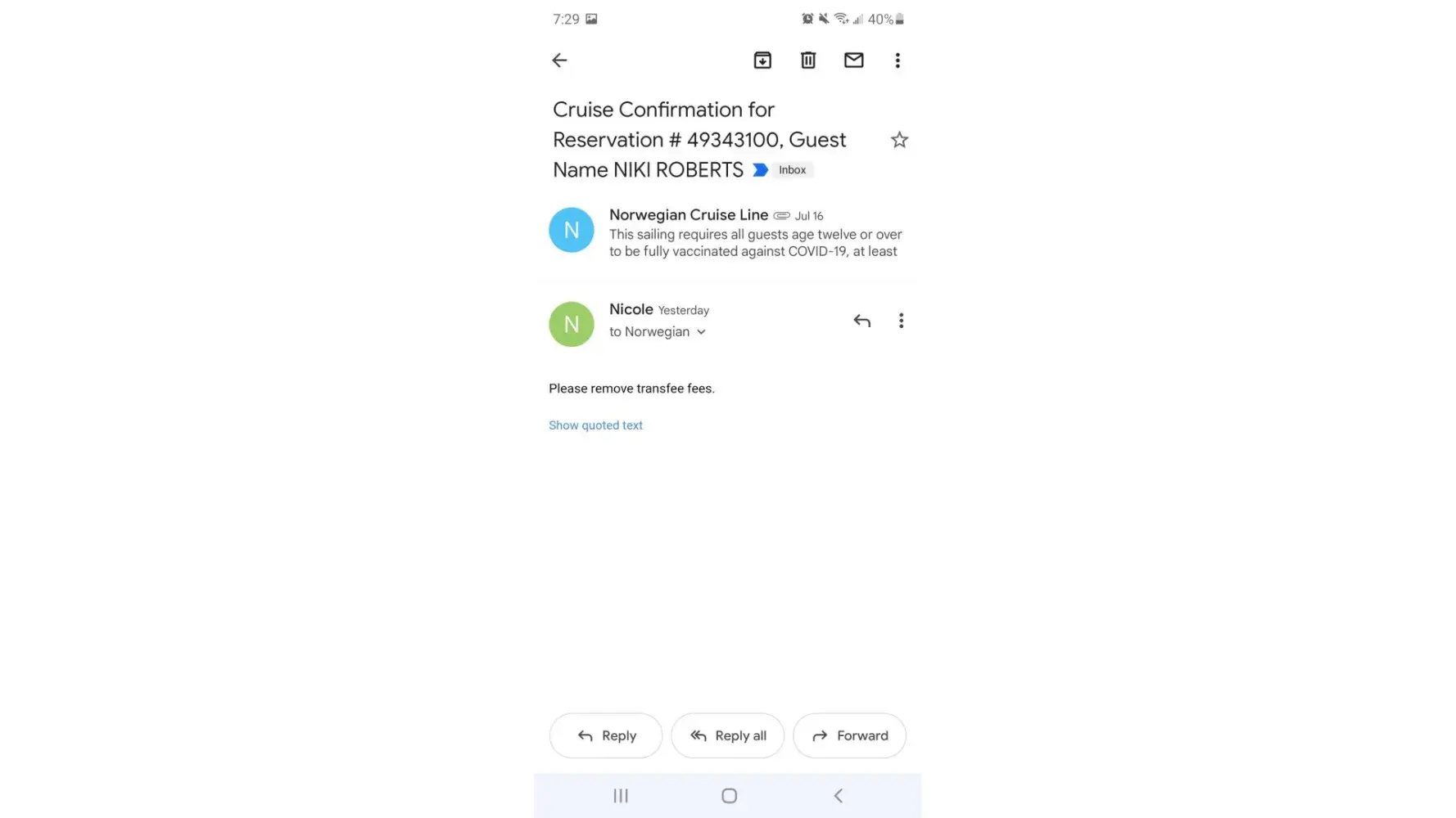 NCL has gone downhill fast wrt their customer service. My wife and I were subject a shakedown at embarkation on our recent east Mediterranean cruise (Norwegian Jade May 1st). I called numerous times before the cruise to confirm covid testing requirements and was referred to their website rules. Those rules clearly state either an antigen test OR a PCR test are required at embarkation. My wife and I and about half of the passengers on the NCL airport shuttle had antigen tests and were forced to sign a paper agreeing to pay $300 for the administration of a PCR test otherwise we wouldn't be allowed on the ship. Some of us pointed the NCL policy out to the NCL rep but to no avail. The message was clear, pay up or you won't get on board. After the cruise I was stonewalled by NCL customer service when I tried to get reimbursement . Don't cruise NCL unless you want to be subject to a shakedown.