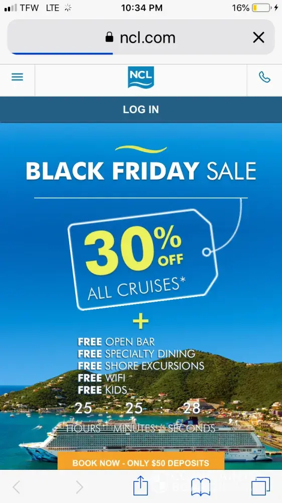 Norwegian caribbean cruise line has been advertising on line "30 % off all cruises". When I tried to make a reservation for january 17, 2029, I was told by the norwegian caribbean cruise line agent that that cruise I was inquiring about and ready to book was not eligible for the discount! The agent had to put me on hold to see why the discount would not take in the computer. It ended up being that because the cruise I inquired about was less than 60 days out, it was not eligible for the promotion! Nowhere does it state that in any of their advertisements. There is no fine print until you call and try and make a reservation — only then are you told is is not as advertised! Bad public relations and false advertising!