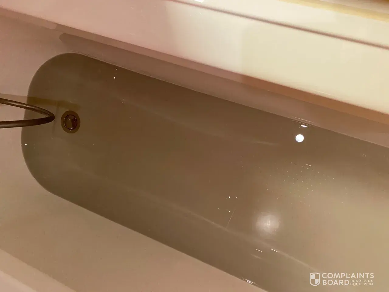 We boarded on the 13th – slept – and I got up on the 14th to take my bath. We booked a Club Balcony Suite because it had a bathtub. I turned on the water to fill the tub, went in to suite and got my clothes - then came back to the bathroom. I was appalled and disgusted to see the water in the tub.