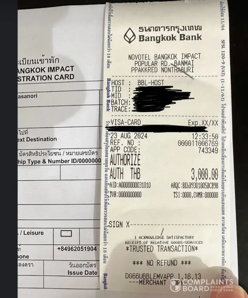 They took the deposit 3,000THB as a picture.