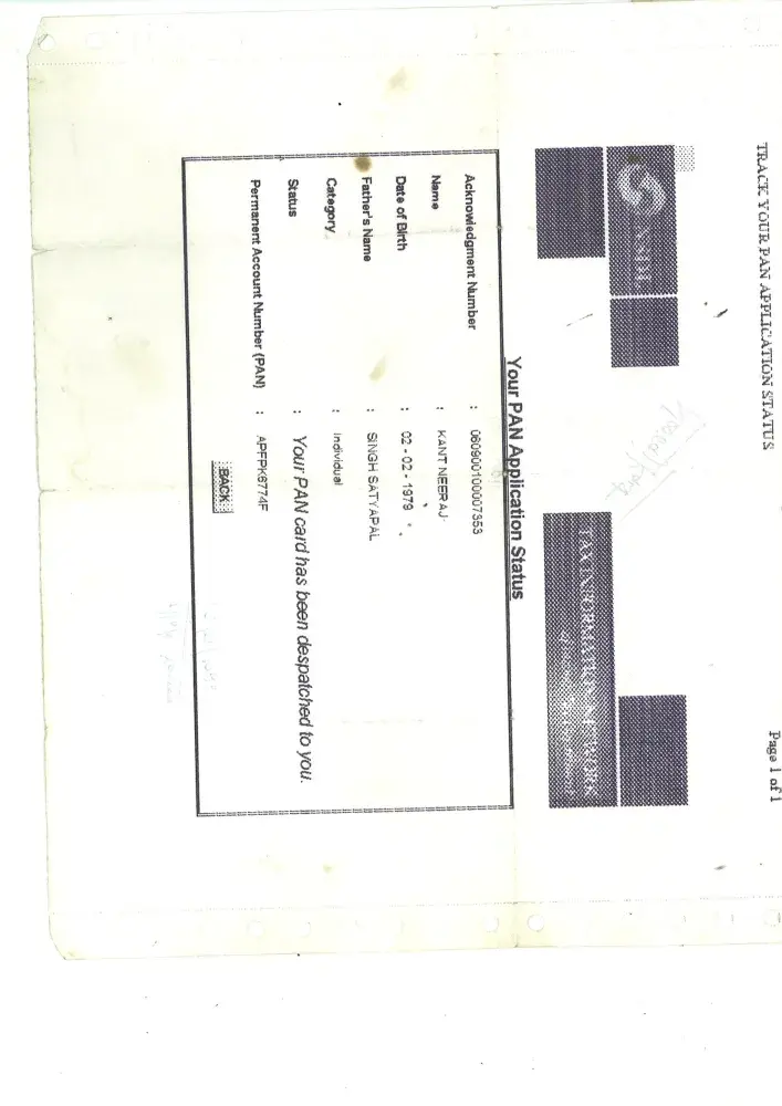 ack No. [protected] kiran shrivastava more time or dacouments or sumetted but card or not recived pl sir pl despace forpan card very importent.