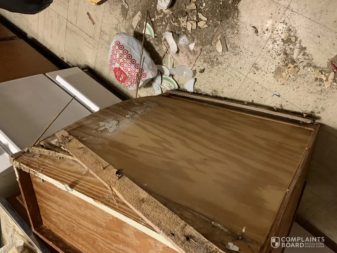 Read full complaintWater leak to electrical outlet to fallen cabinet