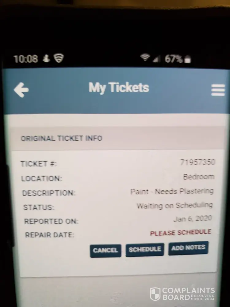 Read full complaintlack of repairs and getting a new stove.