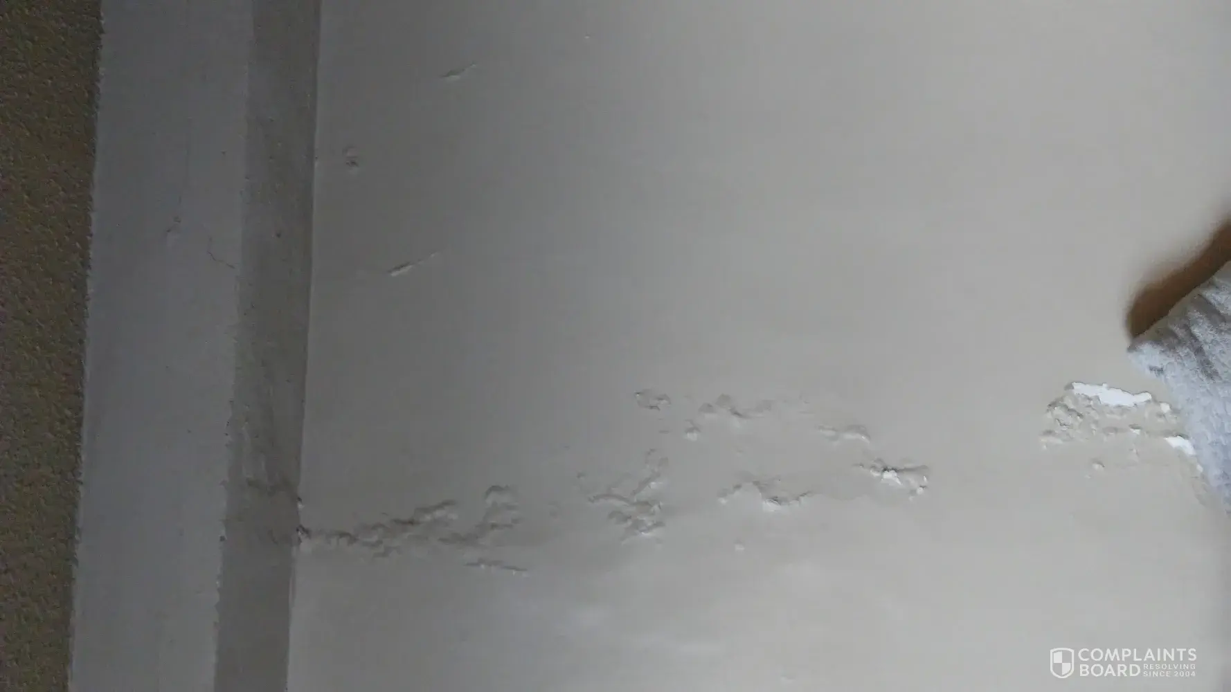 Water is still coming down the wall and in the electrical outlet. There is now a smell of stale water in the apartment. Need repairs done ASAP, before more damge is done to the wall as well as the floors.