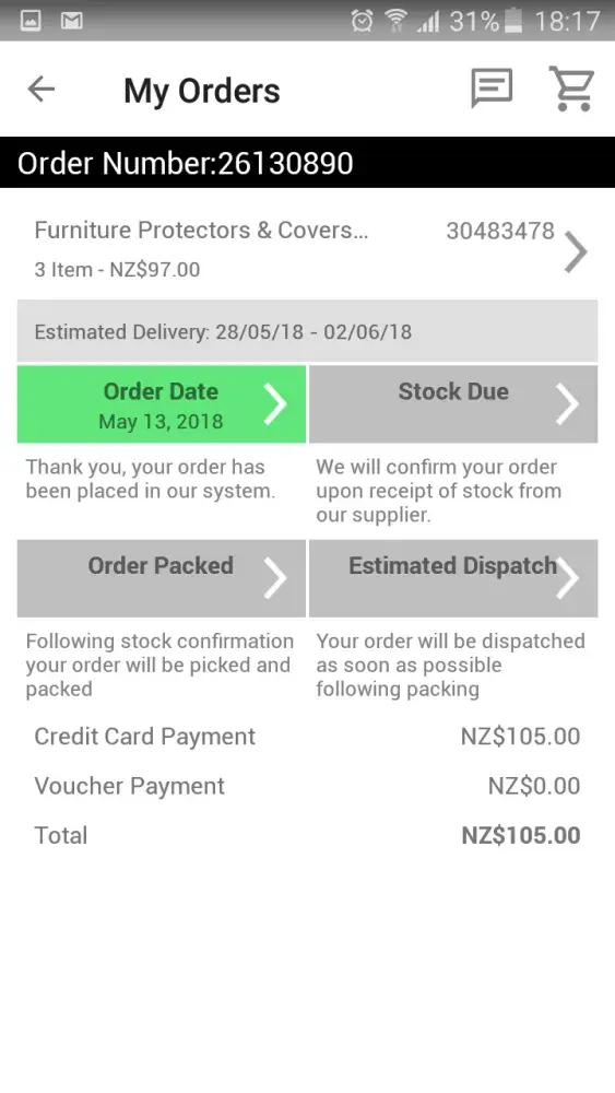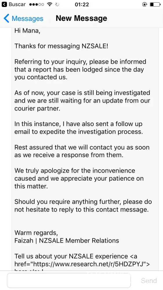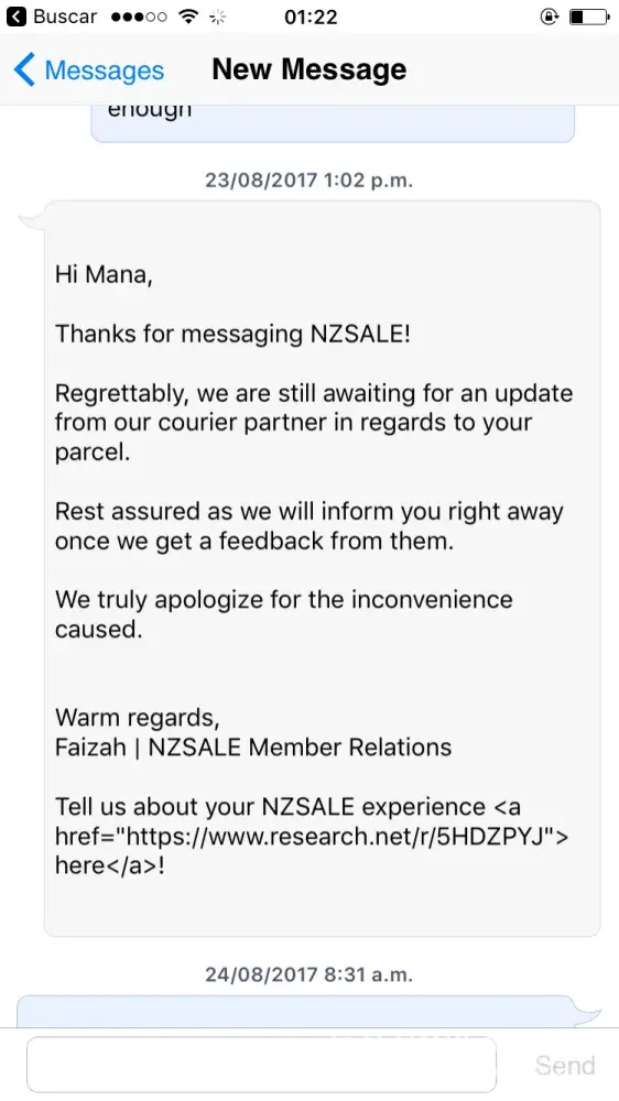 I placed an order on the 18th November for a purse and a 75ml bottle of Gucci Flora perfume(order number [protected]). My purse arrived within the estimated delivery date, however my perfume has not. The estimated delivery date is 5th-10th of December. I've sent three messages on the "Contact" section of the NZSale App and I have sent a message through the Facebook page but I am yet to get a reply. There is also no tracking number provided. The lack of customer support is appalling.