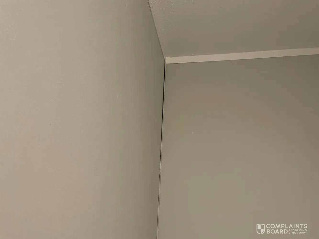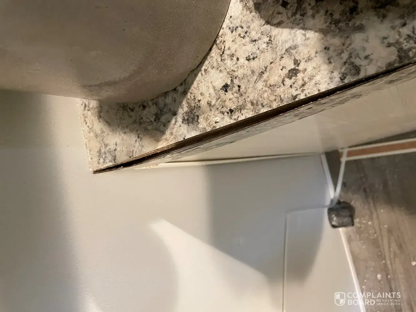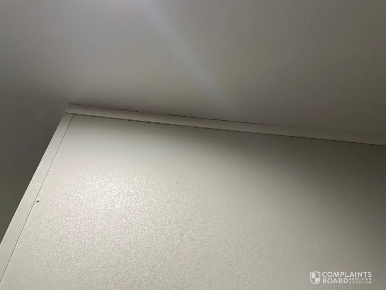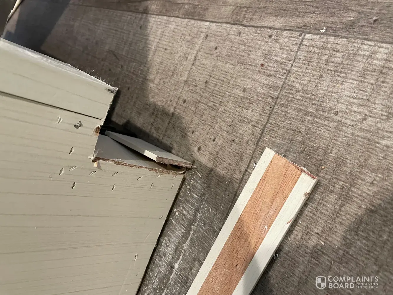 When they finely sent someone to "come fix" the problems. I kid you not literally just used caulking and glue. The walls weren't fixed, I still had tacky cover ups, and they didn't fix the wallpaper that's bubbling up throughout the house. The one counter was "fixed". But all he did was lift it up from the bottom and put broken trim pieces underneath it until it was "leveled". Same for my stove. I can go all day with the problems with this house. I'd save you the hassle of even considering buying. I've got more pictures on my phone this isn't even the half of it.