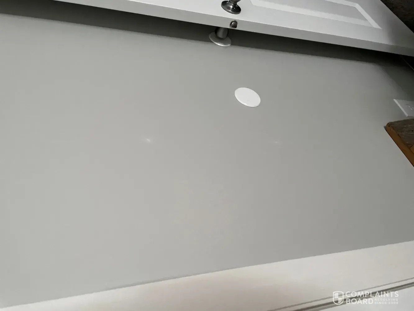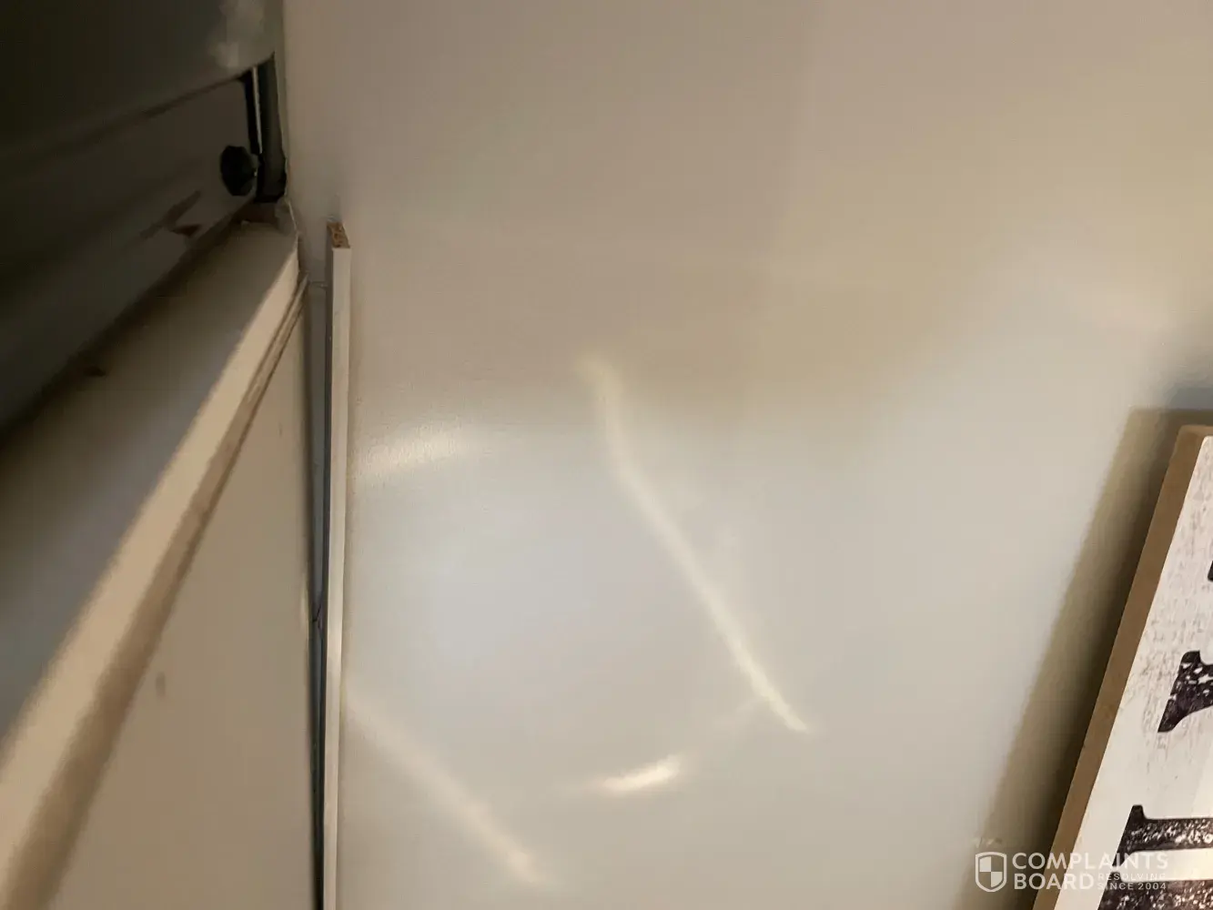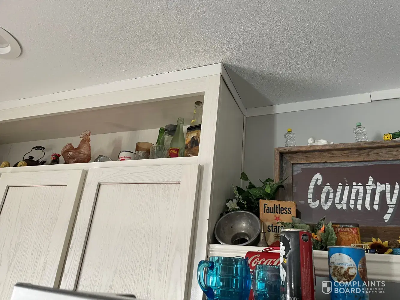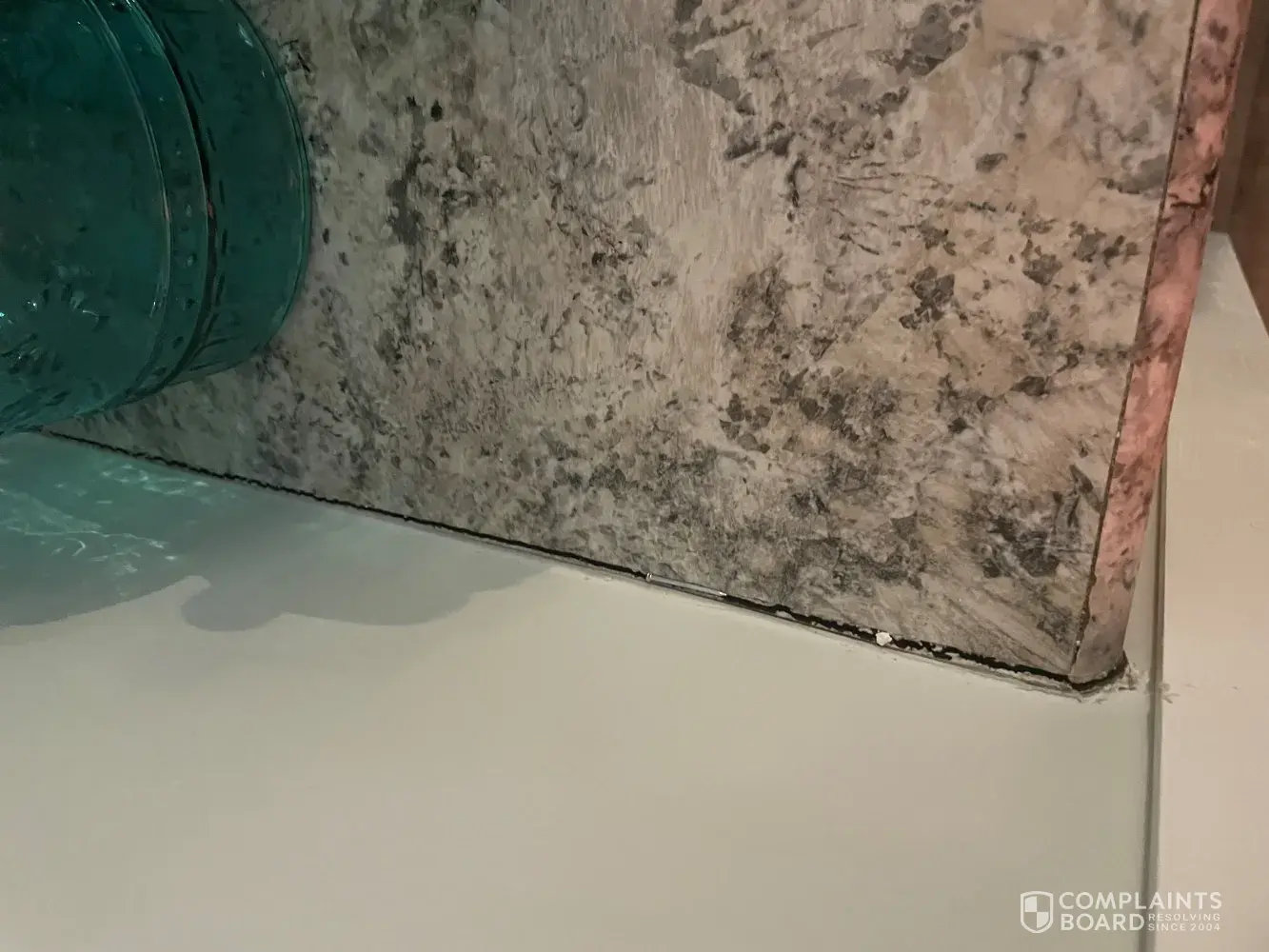 When they finely sent someone to "come fix" the problems. I kid you not literally just used caulking and glue. The walls weren't fixed, I still had tacky cover ups, and they didn't fix the wallpaper that's bubbling up throughout the house. The one counter was "fixed". But all he did was lift it up from the bottom and put broken trim pieces underneath it until it was "leveled". Same for my stove. I can go all day with the problems with this house. I'd save you the hassle of even considering buying. I've got more pictures on my phone this isn't even the half of it.