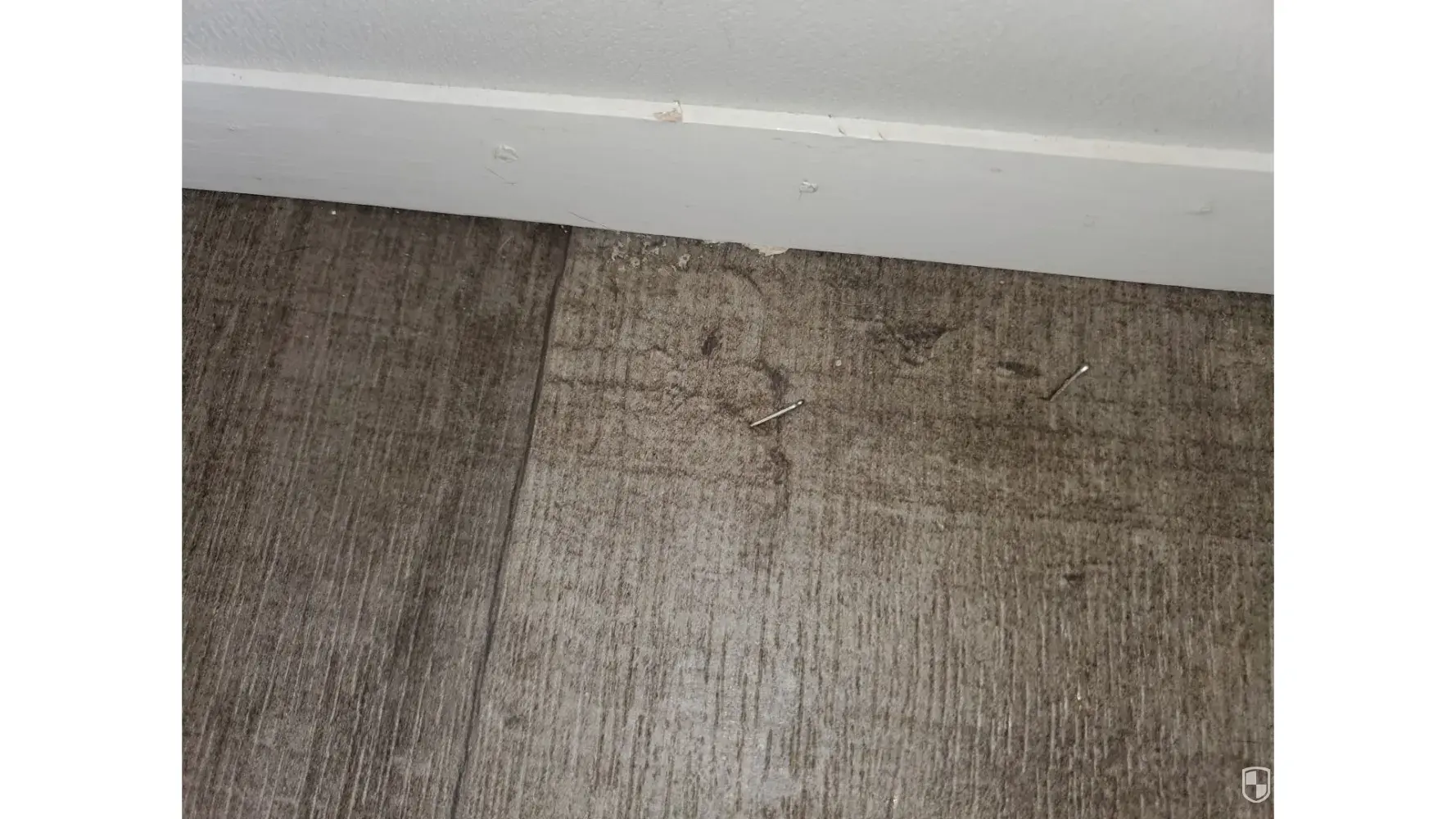 There are nails coming up from the vinyl flooring and made holes. We had the same type of flooring in the last house we lived at never had a problem. The way they placed this flooring down is terrible. I can't move my furniture without the vinyl moving with it. I noticed when the guy was "fixing" the holes the vinyl isn't even glued down. It snags and make indents it's ridiculous.