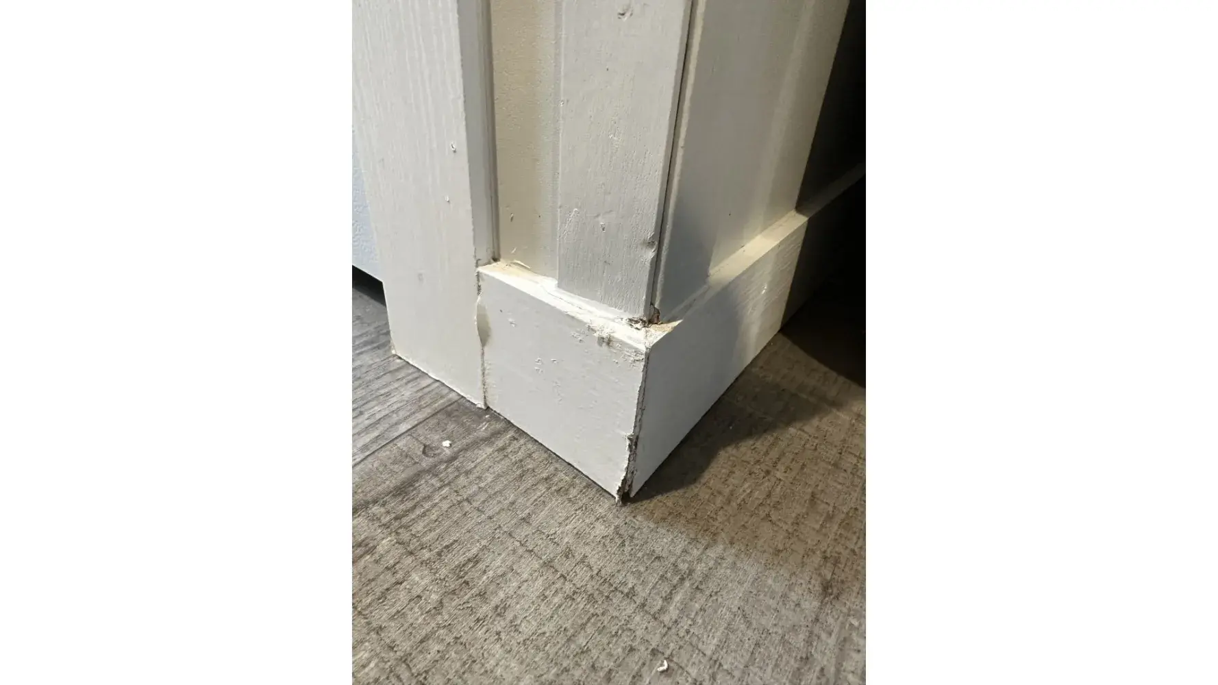 Looks like poor work on the make-ready crew. Did you already sign off on the completion ticket? If not, call them back out to fix all those items. I’d “blue tape†everything and have them fix it. Recaulk, repaint, adjust the door, etc.