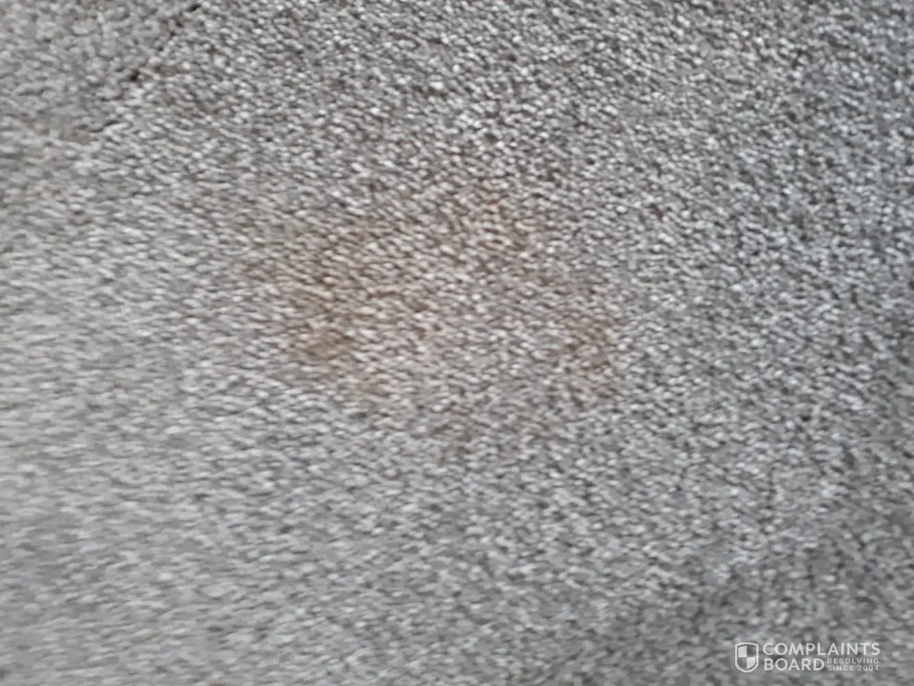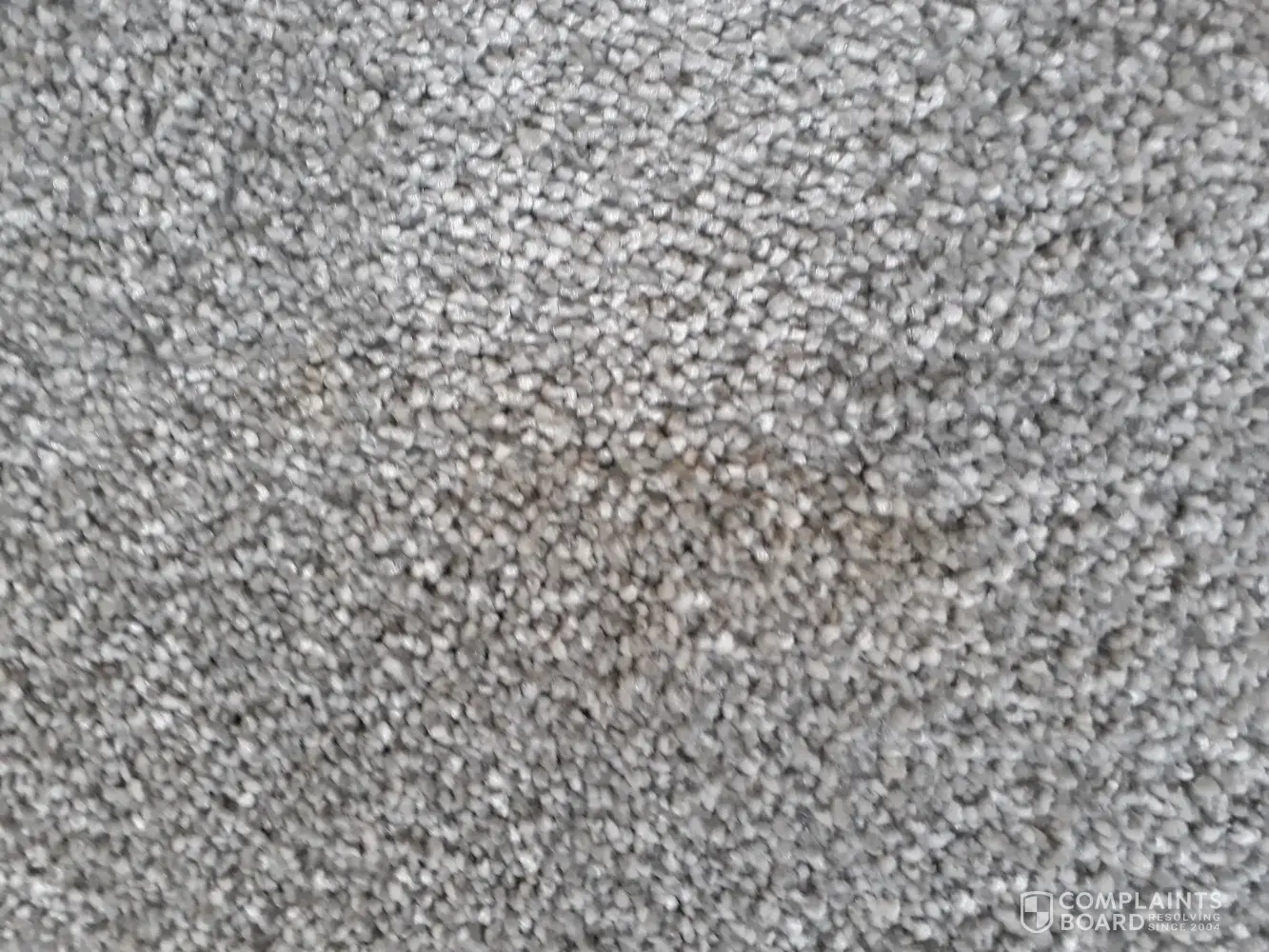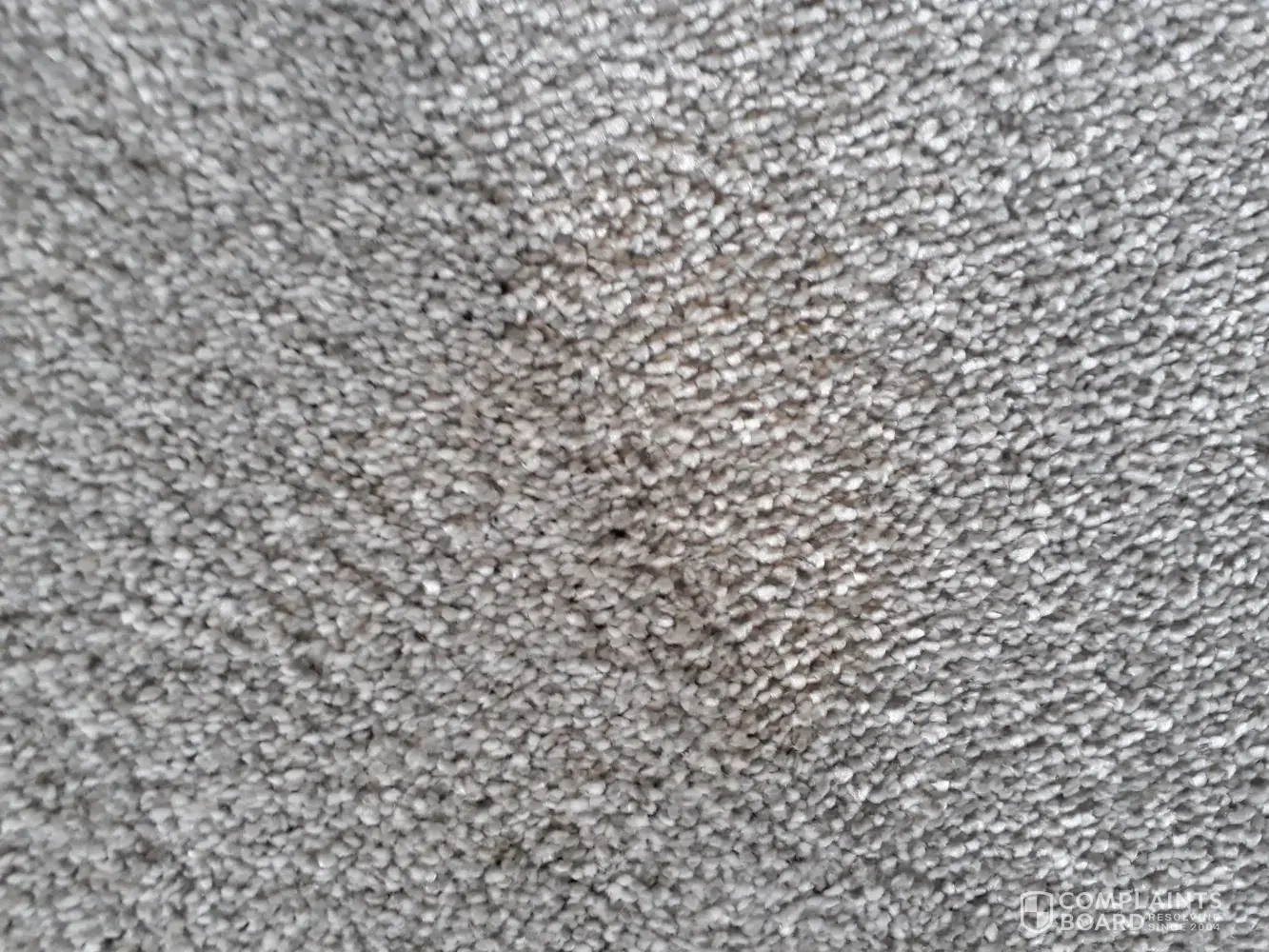 I had a king size bed delivered this afternoon and asked the delivery man to please take his shoes off when he took it into the bedroom as I had just had the carpet fitted a couple of hours before. He did so but I'm presuming the second man who helped him take the second box up did not. As a result there are now 4 dirty marks on the new carpet and I am furious! The service we have received from you has been very good so I am really disappointed. I enclose photos of the marks.