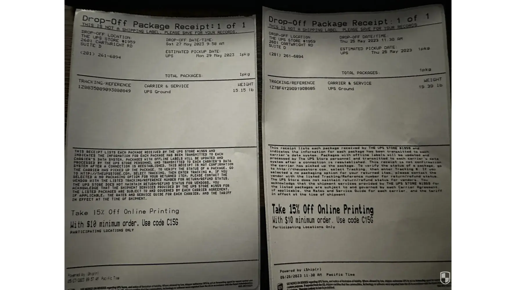 UPS Tracking number for 2 packages
