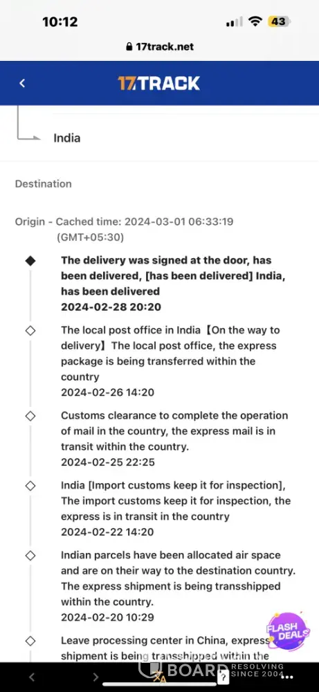 After watching this I got some hope and it has been said that material at-least take 25 days to deliver and after 27 days. I see that my material has been delivered on 29th Feb 2024. But, it has not received me and in the status it is showing that local post office of india has been delivered my parcel to door which I haven’t received.