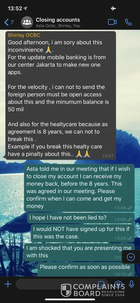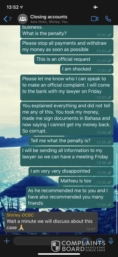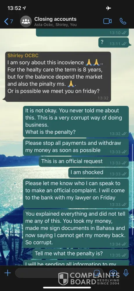 Many of my local colleagues told me OCBC handling of complaints was terrible, I was not too sure until it happened on me lately. No wonder their customers run away and even internal staff leaving frequently. This bank is a joke and you do not know who to believe with them. Best to avoid OCBC forever