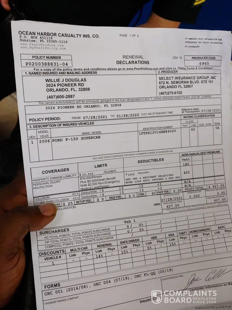 i can't believe how many names of complaints are on the internet about ocean harbor auto insurance.