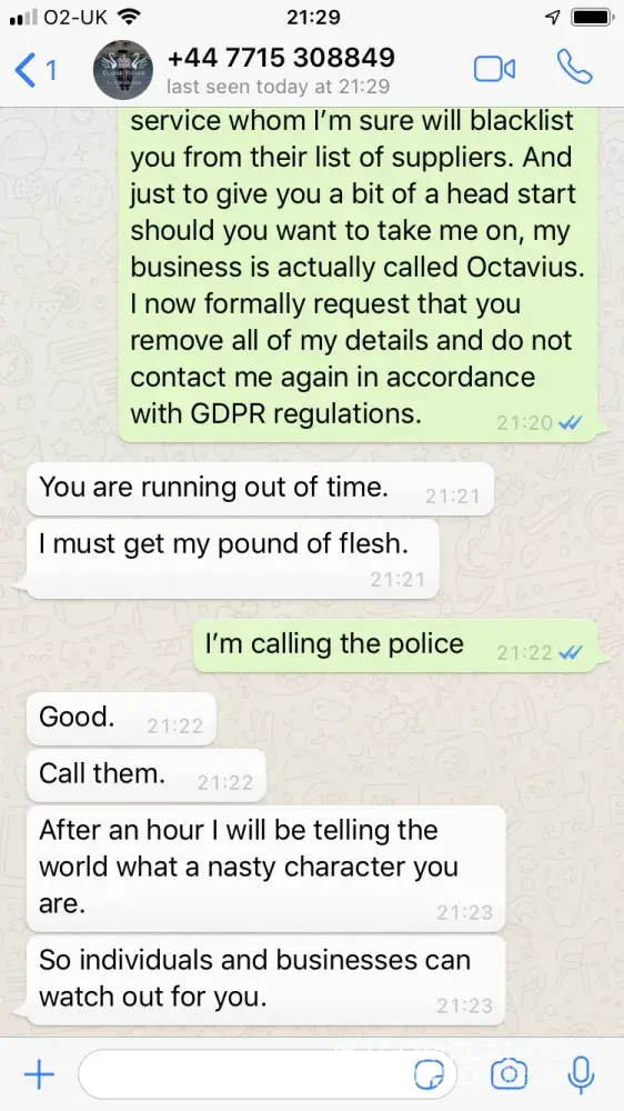 It has been a complete nightmare dealing with Natalie Basiratpour of Octavius Finance. She has threatened our business by writing all kinds of fake and fictitious reviews as we refused to deal with her due to her very poor business etiquette and aggressive / threatening behaviour towards myself and members of staff. From start to finish she has been very aggressive, threatening, dishonest and has continually made up all kinds of fictitious stories and lies about our brand because we did not bend over backwards upon request and succumb to her belittling and shameful demands. I would like to warn anyone looking to deal with Natalie to think twice as it will only end in disastrous tears.