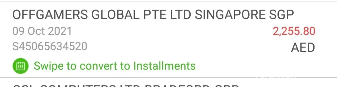 There is fake transactions happened from my credit card in Offgamers Pte LtD company name with the amount 2255.80 AED