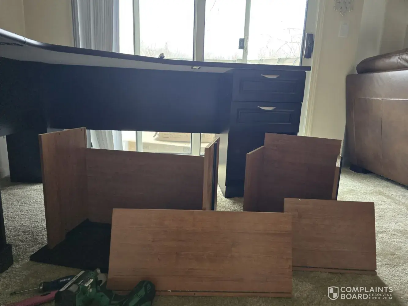 When I arrived to the store, I had laid the 2 drawers on the counter in front of the general manager who didn't look happy that I had brought in the drawers. Then he asked what the deal was and I told him calmly that the 2 inserts for the 2 drawer bottoms didn't fit but everything else did. We had set up the desk completely after the semi dropped it off to my apartment. We carried it up the stairs and set it up a couple days later. I wanted to see about getting the 2 parts for the desk and he told me that I couldn't get any parts and that I would have to buy another desk and return the one I had just got set up. I asked him if I could get the 2 inserts off the display model and he said no. I started to cry and I asked him what if the next desk that took hours to set up was missing parts and the next desk and the next desk and the next desk is missing parts. Then what? He said that I would have to buy another one like an A-hole. That's when I asked him if he would wave the fee of having it set up for me and he said NO, So I asked him if there was someone higher than him that I could talk to and he also said NO. He gave me the customer service number so I could start a return/ exchange. I asked him if there was anything that the customer service people could do and he told me NO again. So I took my drawers and left the store in tears because that general manager refused to help me at all cost besides handing me over to another nightmare of having it delivered off semi at my apartment and disassembling the desk I just had set up and bringing it back down the stairs to meet semi driver again to pick up the old desk and deliver another one. I wasn't disrespectful or belligerent. He made me feel that I was screwed either way. He made me feel like the 2 wrong parts besides the plastic pieces that broke in the process of getting the partial drawers there was my fault in a way.