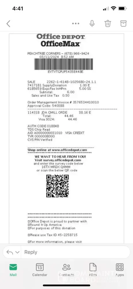 Once this happened I contacted Office Depot customer service [protected]) and was told someone would get back to me within 72 hours. Today is 2 weeks later and I have not heard from anyone. I have tried to contact them multiple times to no avail. VERY UNPROFESSIONAL! I will not do business with them again. I will be ordering from Amazon her on out.
