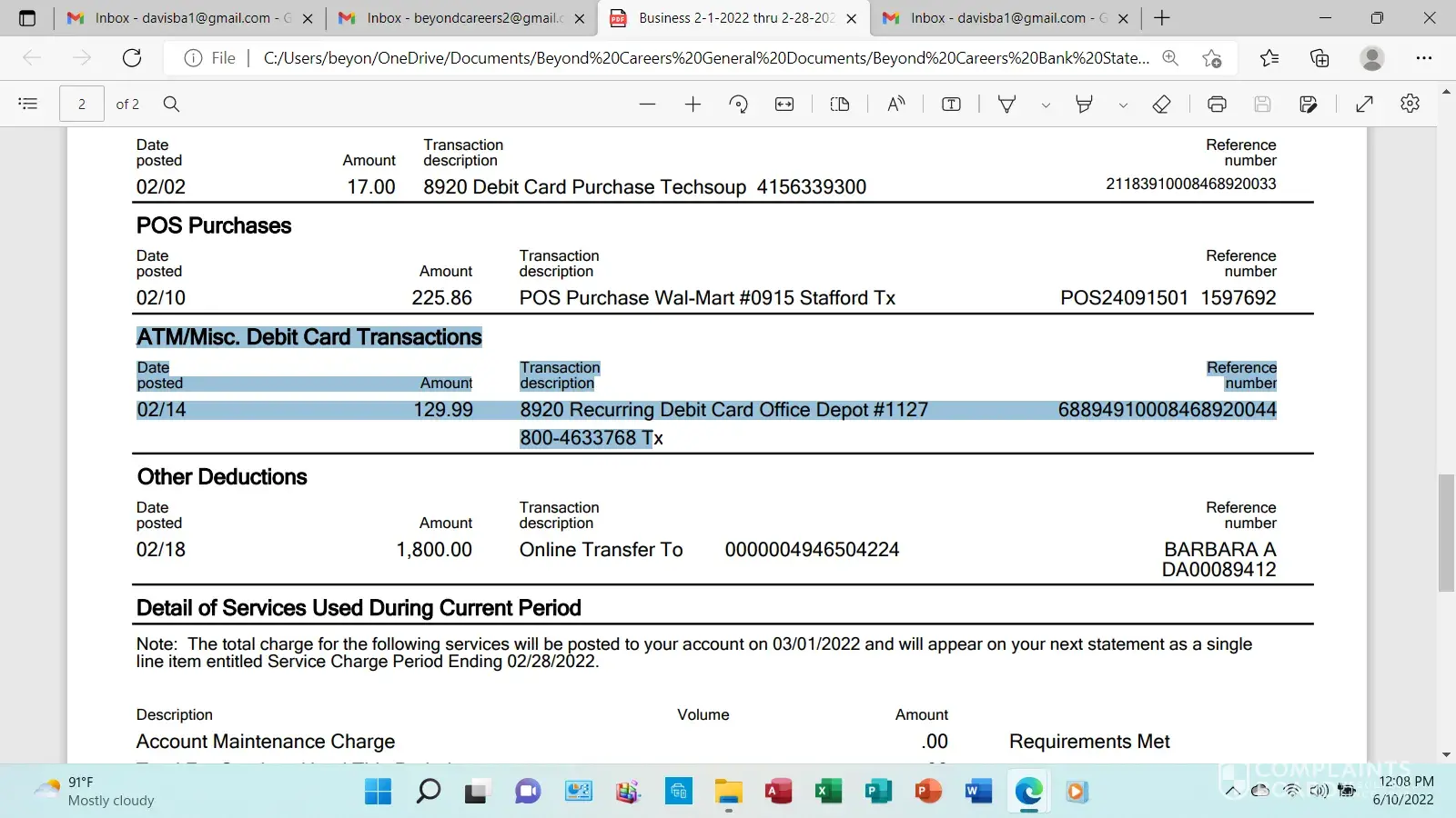 EXPLANATION OF EVENTS JULY 20, 2022 On May 16, 2022, I purchased a Lenovo Ideapad 3 (17â€) from Office Depot, Springfield, IL. This machine ended up having all kinds of problems. I returned it to Office Depot on May 25, 2022. They did not have another one so I decided on an HP 22†All-In-One. It was the last one and the box had been re-taped. The...
