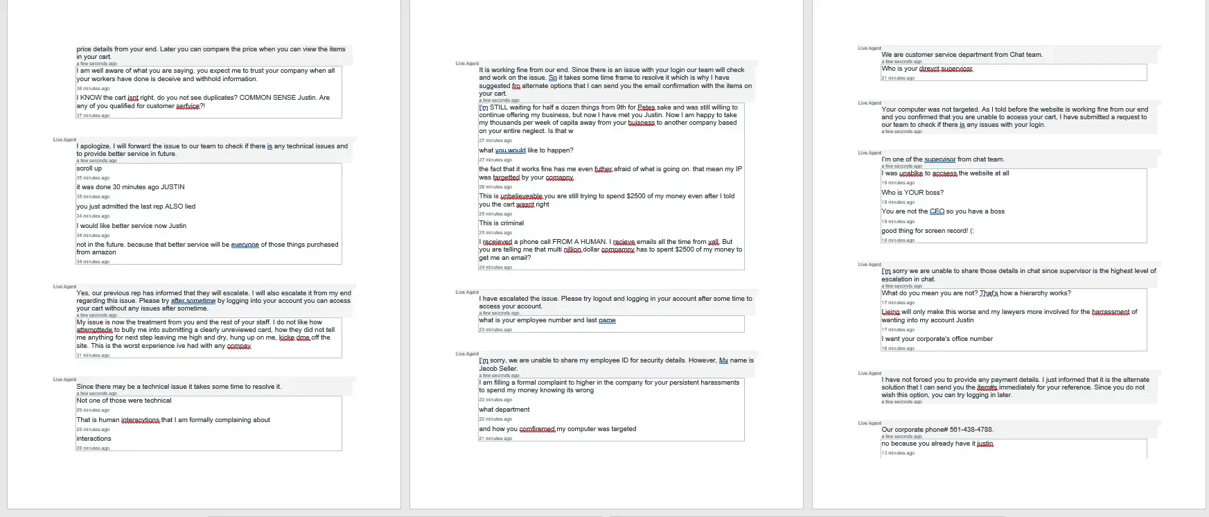Copy of my email response today to Robert. And attached is copy of chat with Justin (sorry for my terrible spelling. was very anxious by the situation)