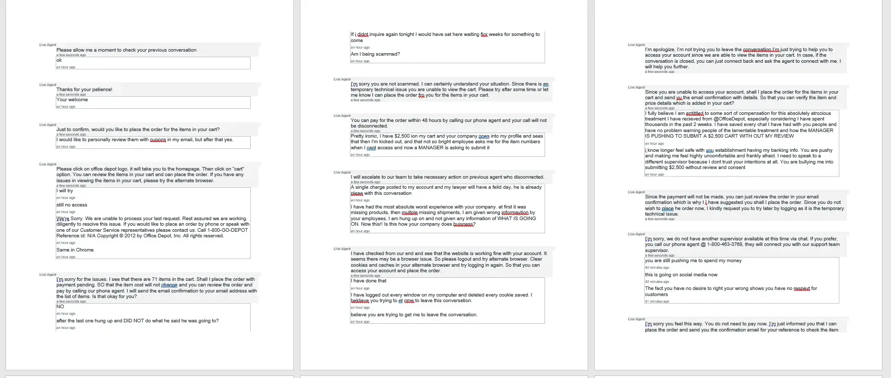 Again thank you for doing in 3 hours what I have been waiting weeks to be done. It certainly has not been a pleasure doing business with you. Or the associate I spoke to prior to you. Which you never address the reason I even requested to speak to a manager, or even inquire. Intolerable, inconsiderate, and condescending attitude portraying she would rather be doing anything in the world except what she is being paid to do and making me, as a customer, feel incredibly unvalued because they are "confused", as you so happened to enjoyed saying towards myself. Completely forgetting their role in a customer service call center is… assisting customers? But again, you spoke to me the same way so its no surprise CSA's would mimic their leadership, if I dare call it that. And with that, may actual leadership within Office Depot make the appropriate change before others are treated like myself and it becomes common talk of it being expected treatment to customers by your company when, your company, was the cause of the issues.