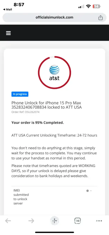 On 2/18/24 I submitted a request to http://www.officialsimunlock.com/ to get my iPhone 15 Pro Max Carrier unlocked. The fee for the Unlock eligibility check was $26.00. The way they advertised I thought that that’s all it was gonna cost a little behold they wanted more money. So on 2/19/24 I paid $79.00 for the official Sim Unlock order. As advertised...